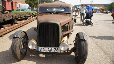 Bilder der Straßenfahrzeuge und auch vom Zug auf der Neresheimer Bahnhofshocketse 2013 (Fotos: Gerhard Schneider)